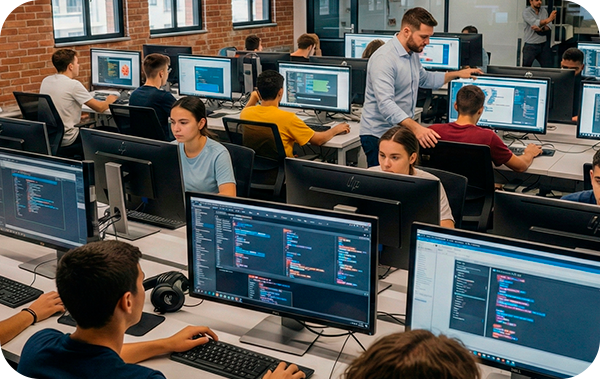 Nossos instrutores não são apenas professores – são especialistas com formação superior que vivem a realidade do mercado. Eles sabem exatamente o que as empresas procuram e vão te preparar para isso.